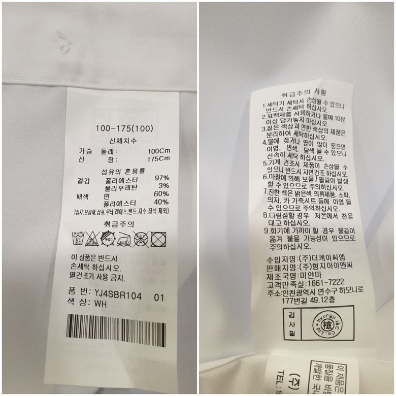 | 6. 세탁방법 및 취급시 주의사항 | 상품상세참조 |