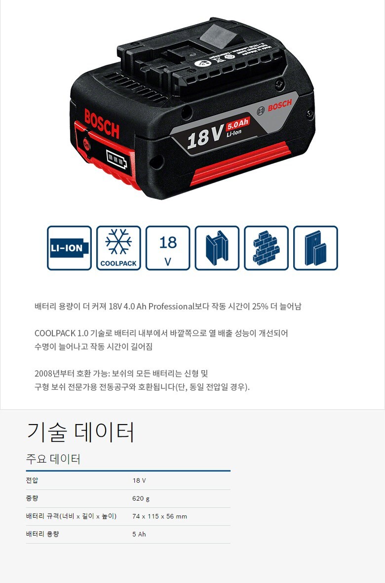 #보쉬 #배터리 #프로코어 #리튬이온 #18V #5.0Ah #알파 #alpha