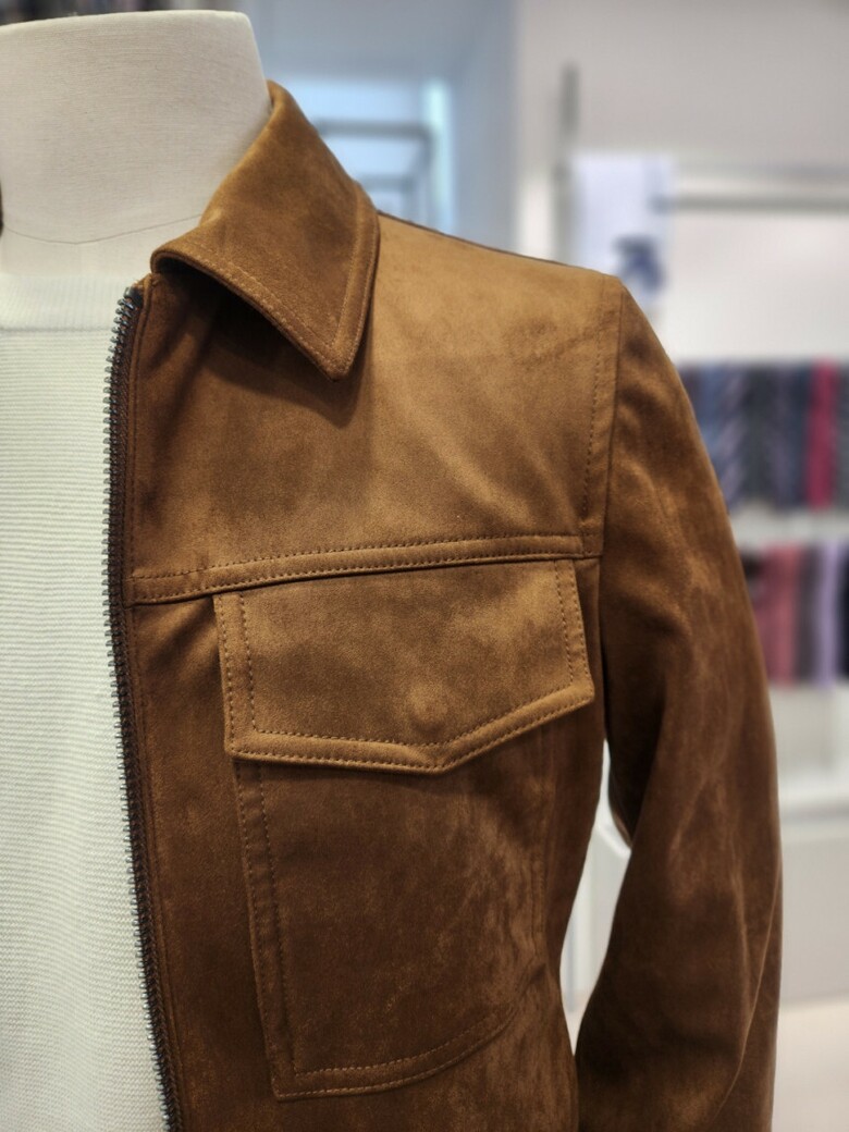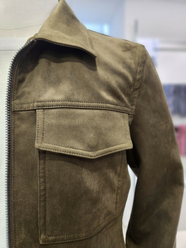 비건 스웨이드 소재의 4가지 다양한 컬러의 트러커 자켓 입니다.