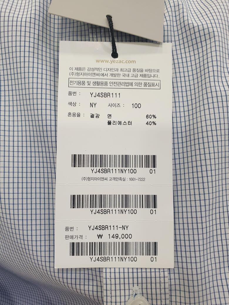 [예작셔츠] 면혼방 모눈 잔체크 일반핏셔츠 YJ4 SBR 111 NY