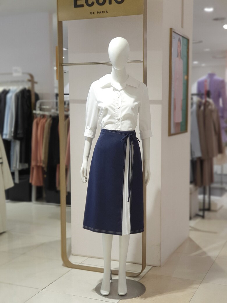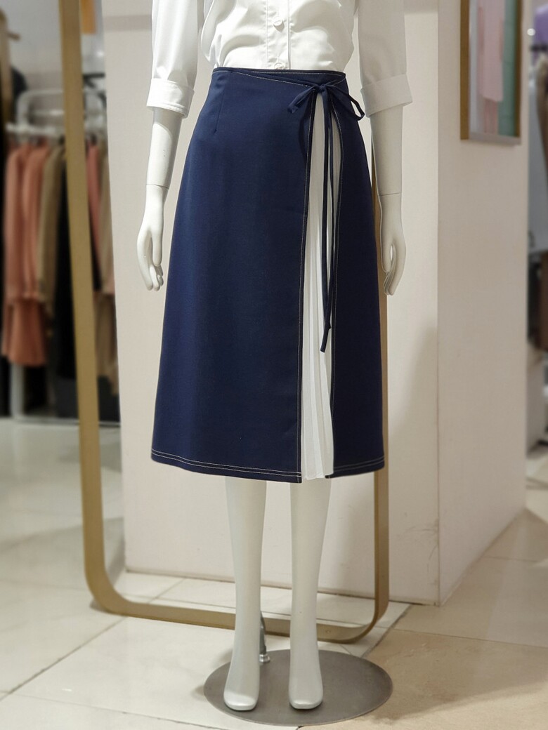 배색 아코디언 랩 스커트 M07RB35WSAM07Z