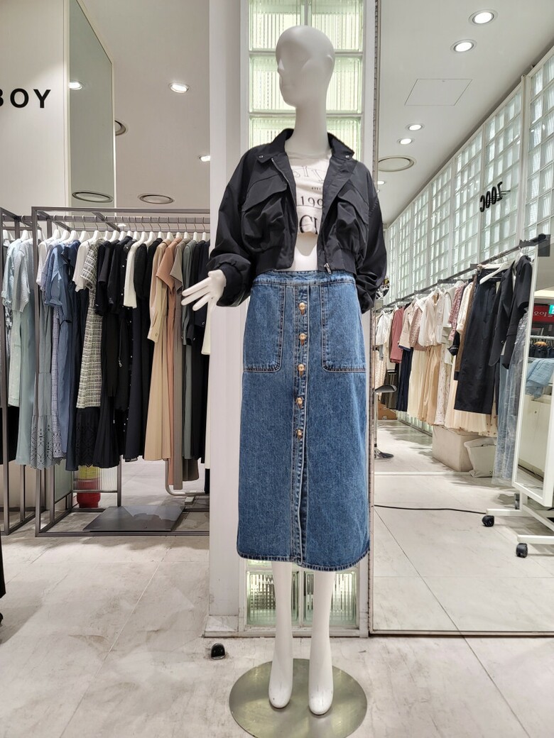 ZOOC 포켓버튼 슬릿 데님 스커트 V241PSD912