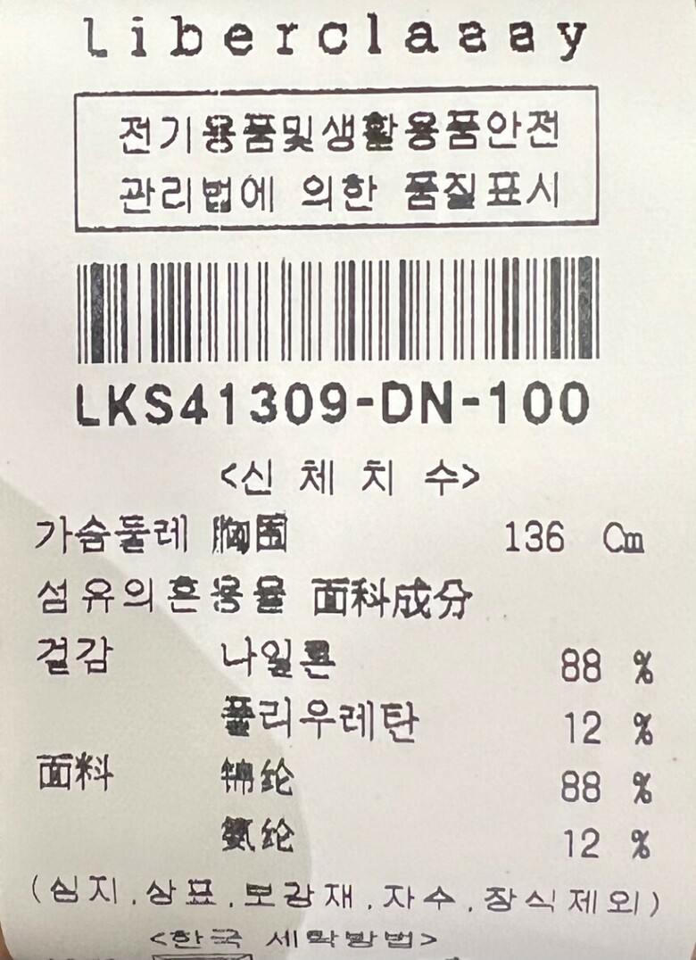 | 1. 제품 소재 (섬유의 조성 또는 혼용률을 백분율로 표시, 기능성인 경우 성적서 또는 허가서) | 겉감:나일론 88%, 폴리우레탄 12% |