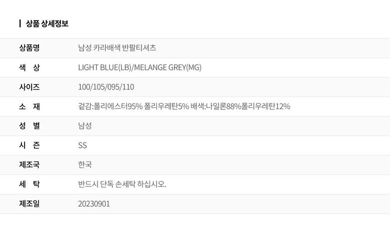 | 2. 색상 | LIGHT BLUE(LB)/MELANGE GREY(MG) |