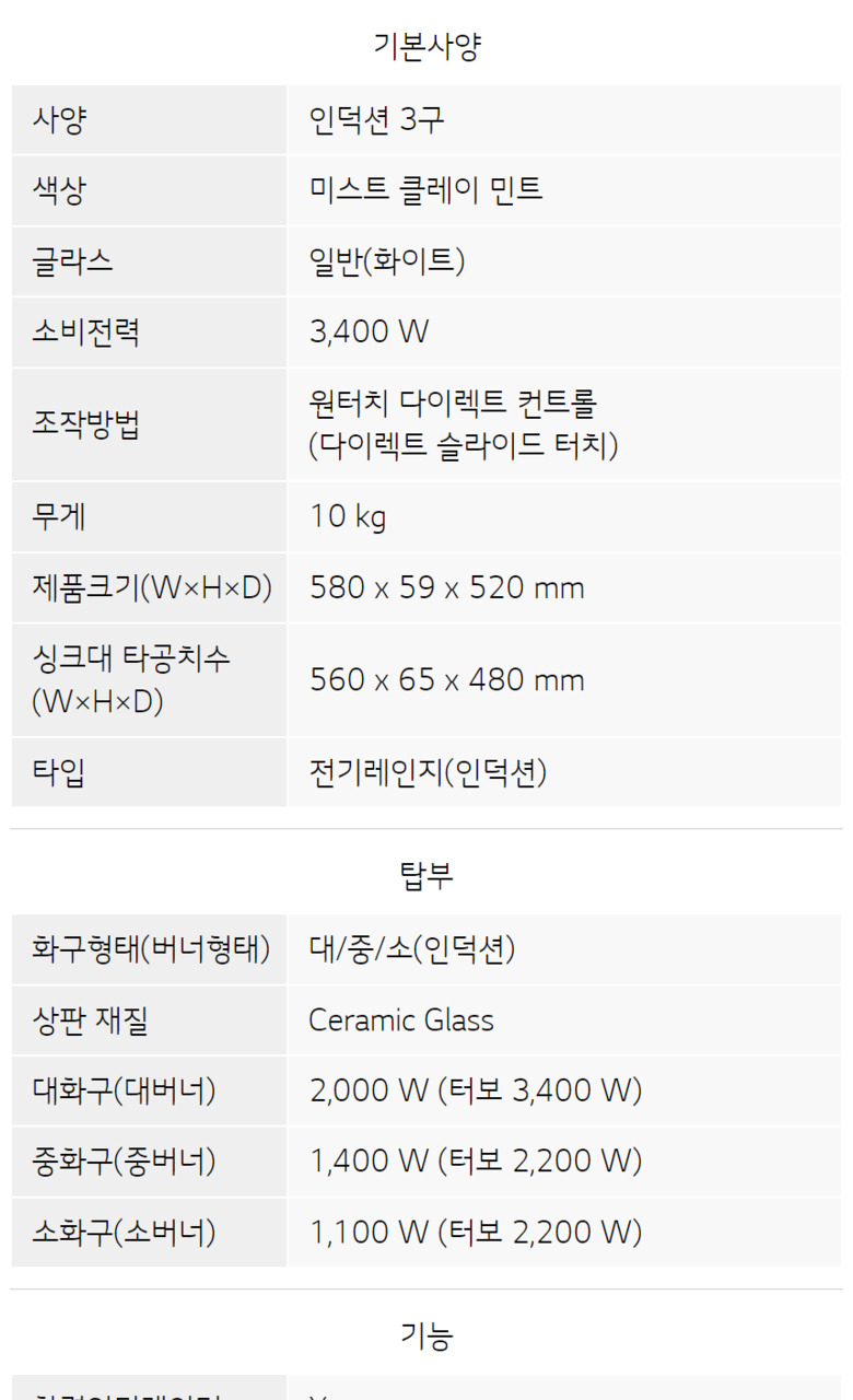 LG 디오스 오브제컬렉션 빌트인 3구 인덕션 BEI3WMQT (민트)