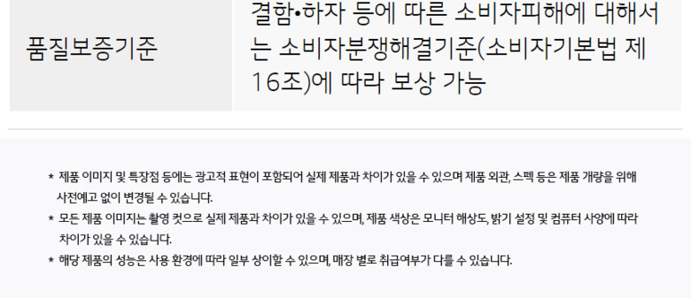 10. 품질보증기준 | 공정거래위원회 고시 소비자분쟁해결기준에 준함 |