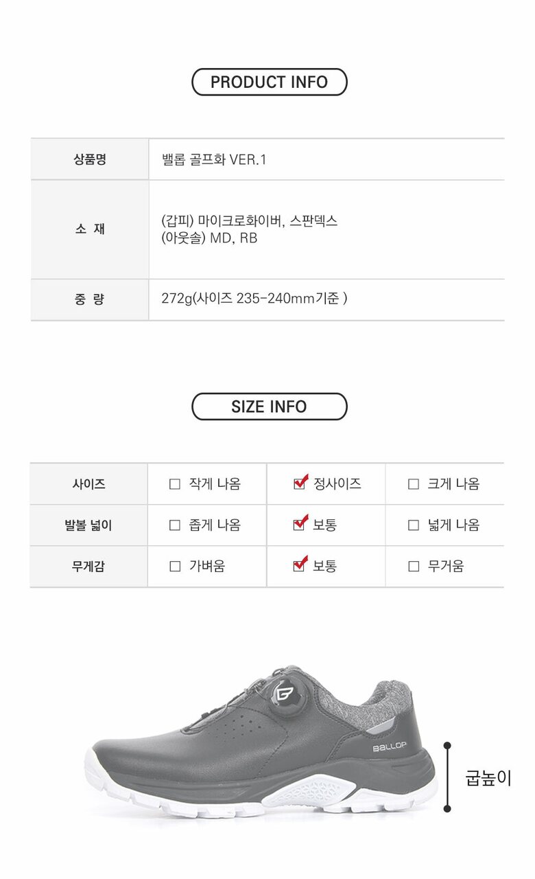 | 1. 제품 소재 (운동화인 경우에는 겉감, 안감을 구분하여 표시) | (갑피) 마이크로화이버, 스판덱스 (아웃솔) MD, RB |
