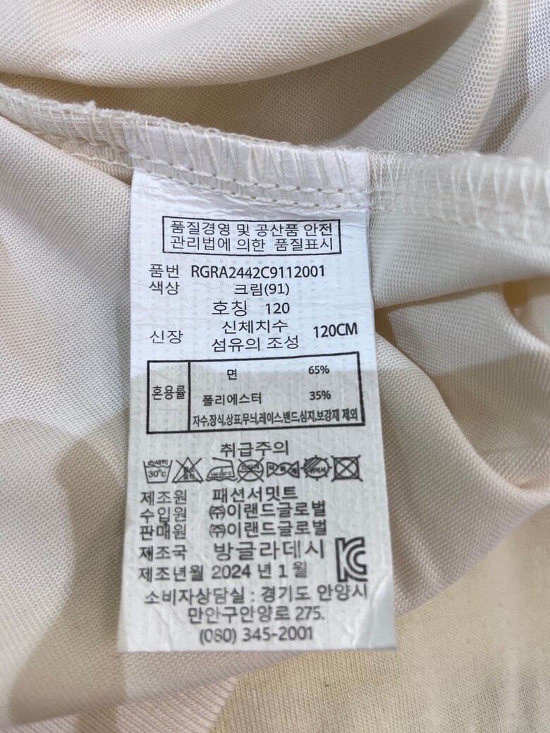 | 1. 제품 소재 (섬유의 조성 또는 혼용률을 백분율로 표시, 기능성인 경우 성적서 또는 허가서) | 상품상세참조 |