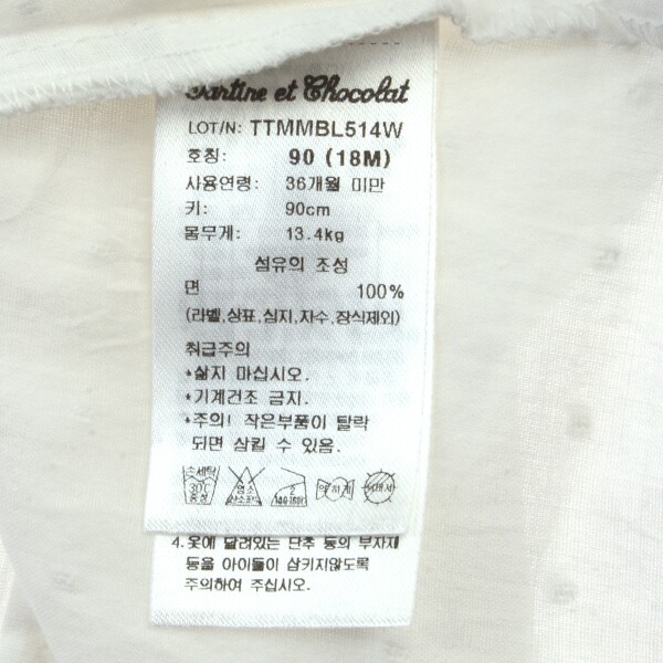 | 6. 세탁방법 및 취급시 주의사항 | 삶지 마십시오. 기계건조 금지. 주의! 작은 부품이 탈락되면 삼킬 수 있음. |