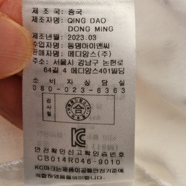 | 1. 제품 소재 (섬유의 조성 또는 혼용률을 백분율로 표시, 기능성인 경우 성적서 또는 허가서) | 면 100 |