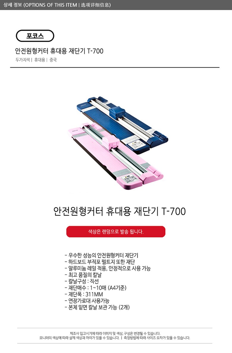 [이노토] 재단기 휴대용 T-700 (네이비핑크)