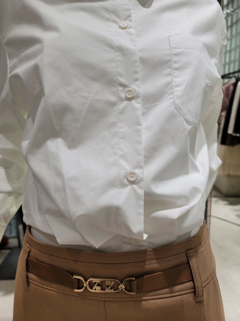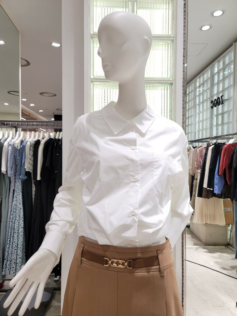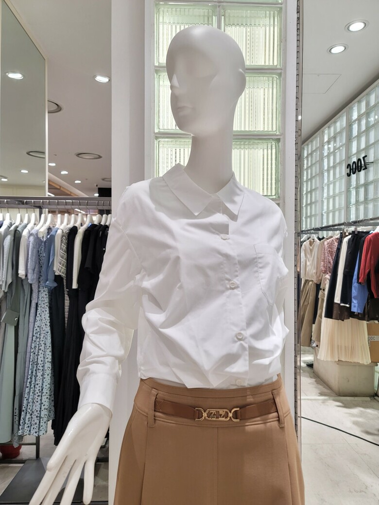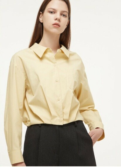 ZOOC 밑단 셔링 카라 블라우스 Z223MSC101