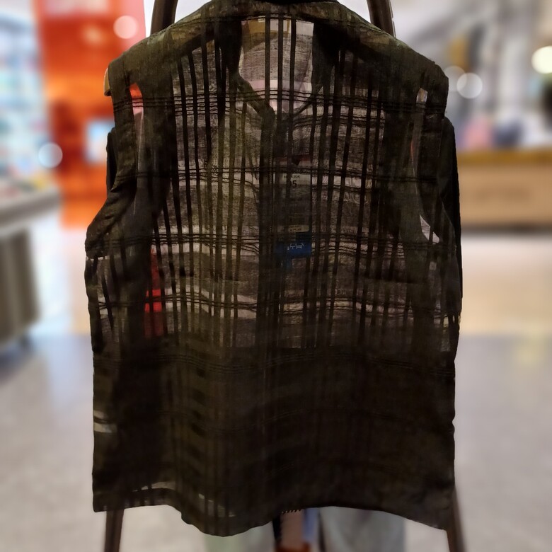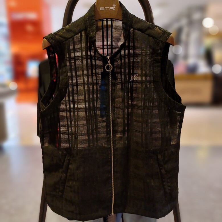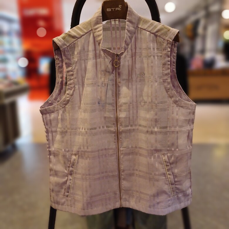 상세설명 : 여성 시스루 조끼. 체크 패턴의 시스루 원단을 사용해 시원하게 착용이 가능함.