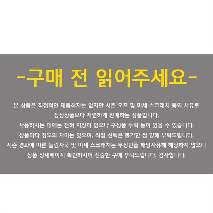 상품불량에 의한 반품, A/S, 품질보증 및 피해보상 등에 관한 사항은 소비자 분쟁해결기준(공정거래위원회 고시) 구매자가 미성년자인 경우에는 상품 구입시 법정대리인이 동의하지 아니하면 미성년자 본인 또는 법정대리인이 구매취소 할 수 있습니다. |