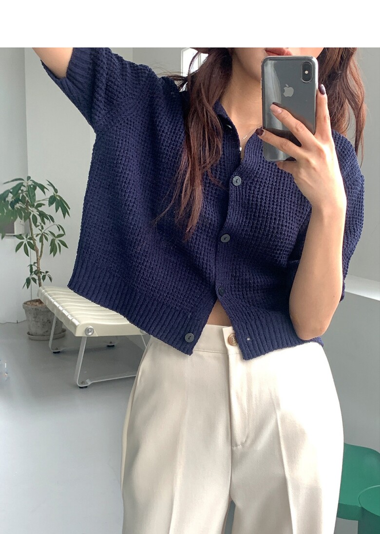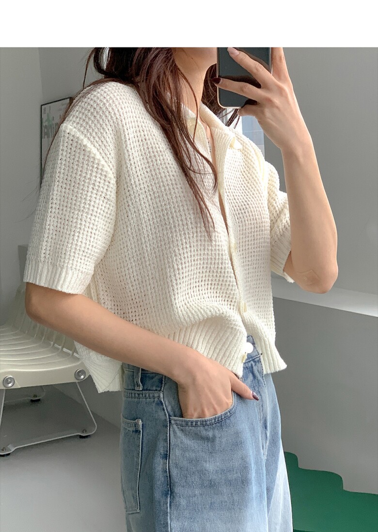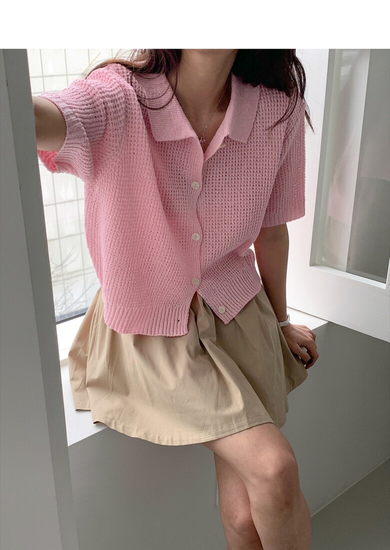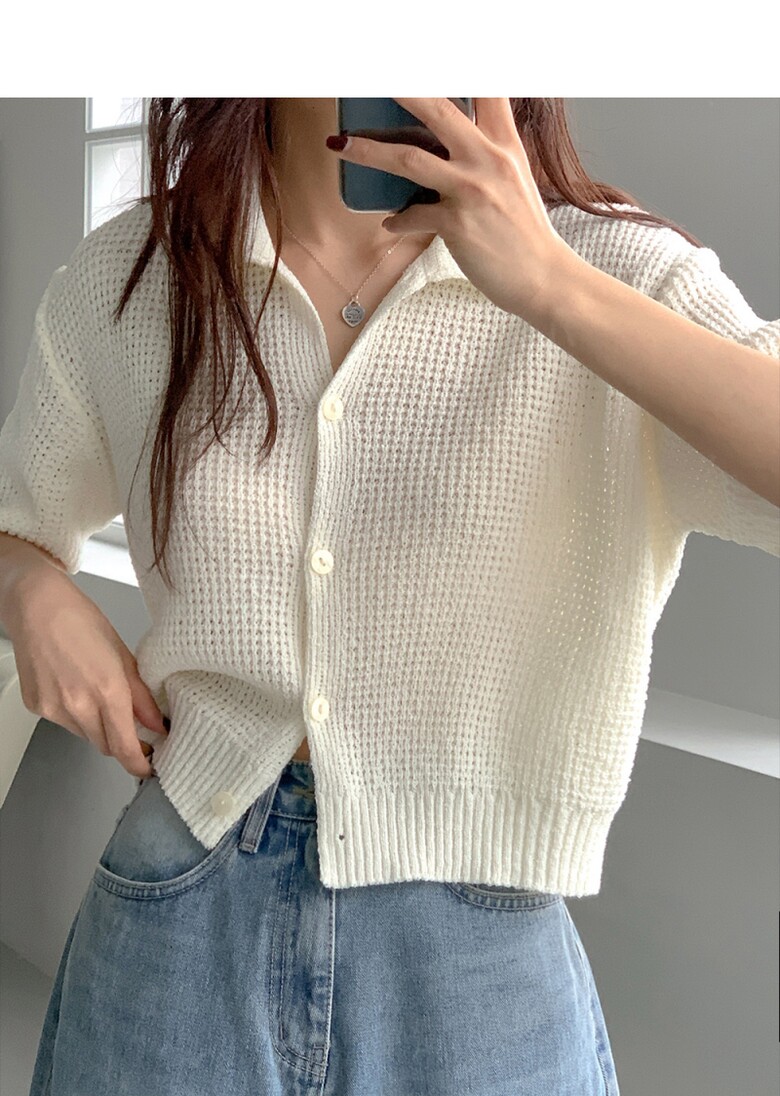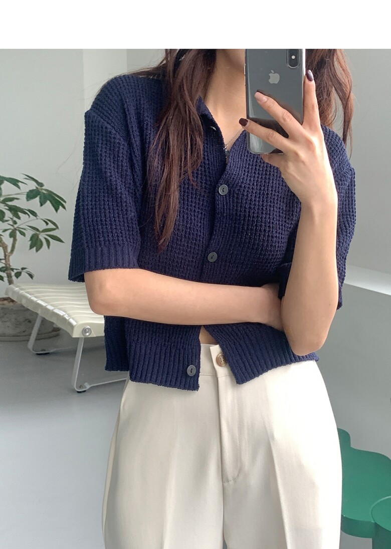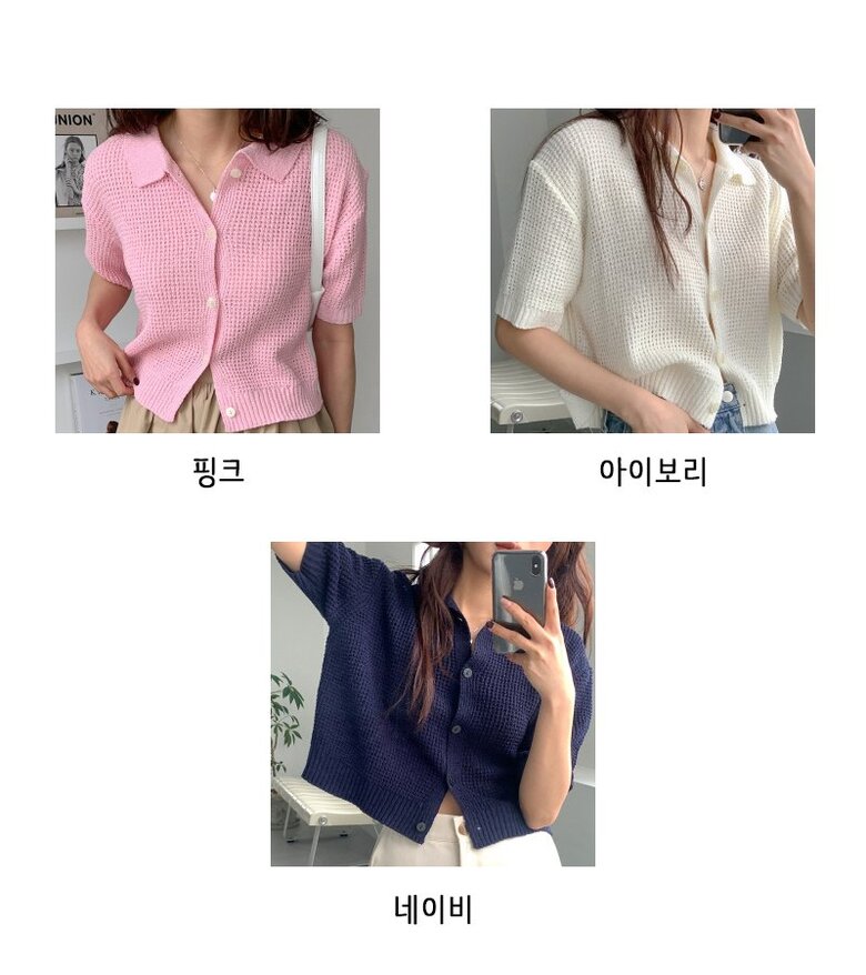 모즐리 네트 카라 펀칭 반팔 가디건 3color_240322_YF01