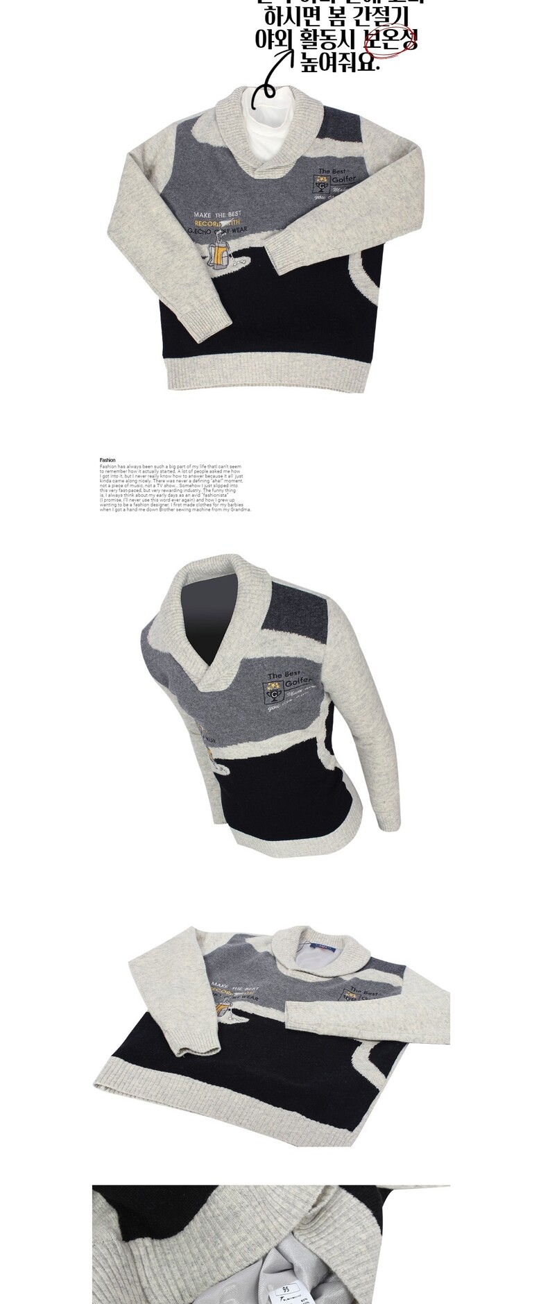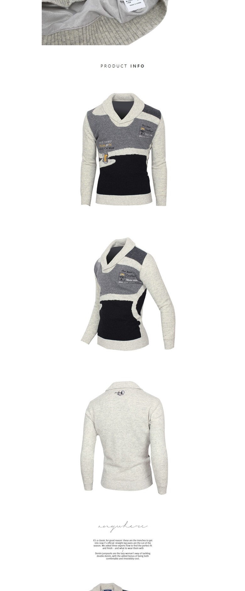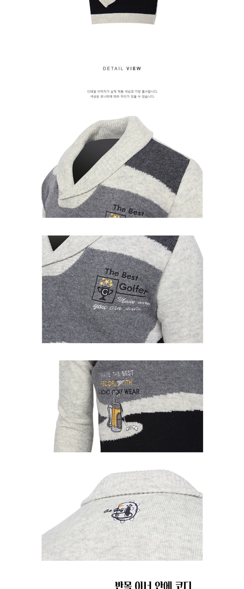 남성 봄 골프웨어 골프 브이넥 스판 카라 방풍 니트 연그레이