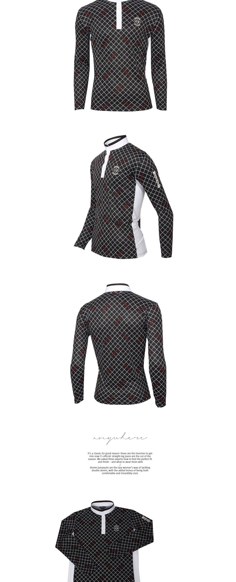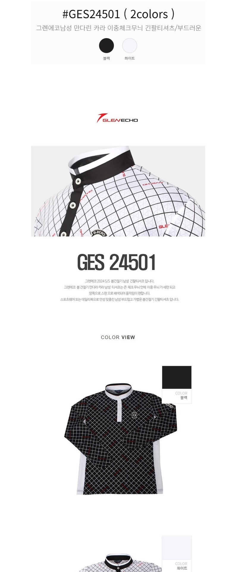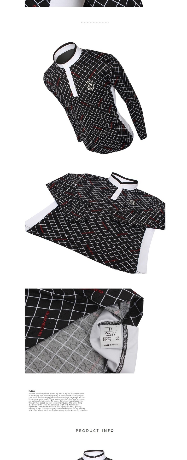 남성 봄 골프웨어 골프 카라티 체크 캐주얼 긴팔 티셔츠 블랙