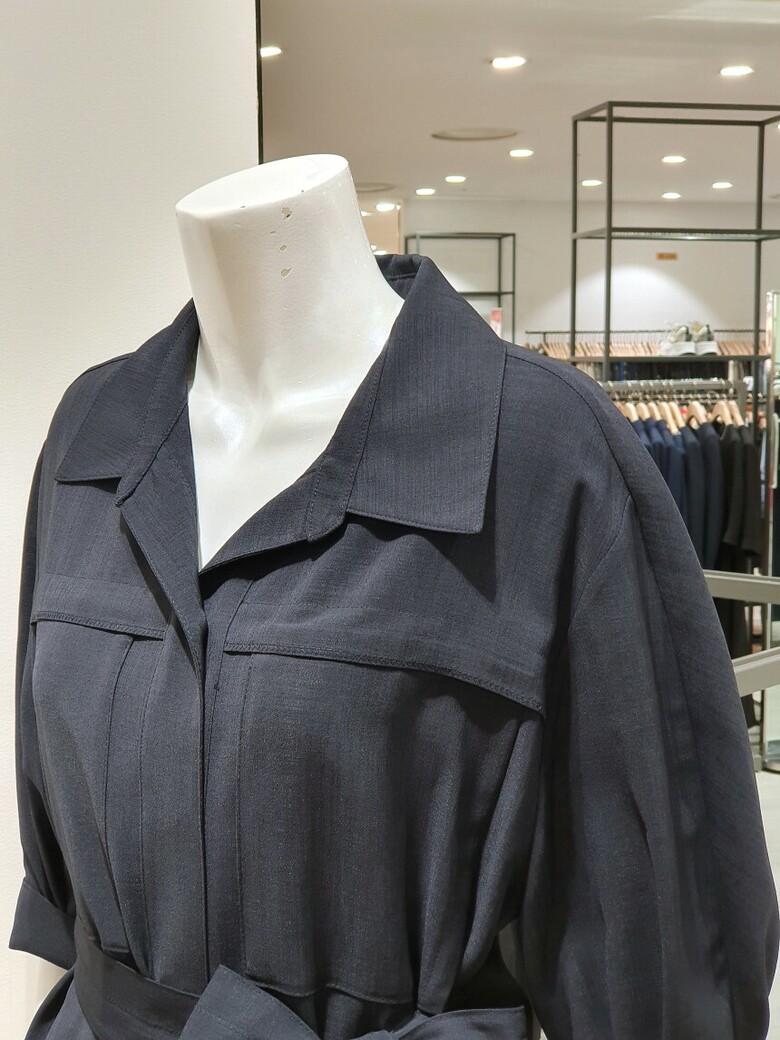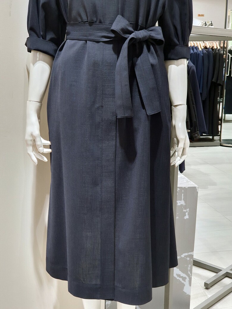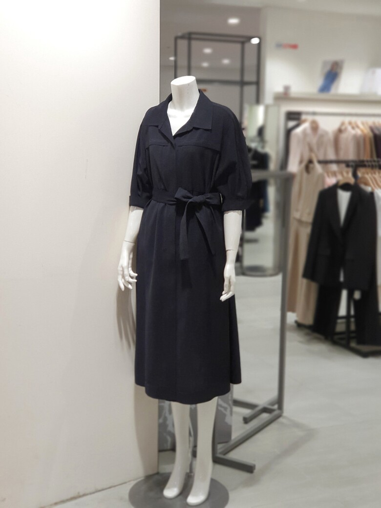 벨트로 허리선을 잡아주어 페미닌한 실루엣이 연출되는