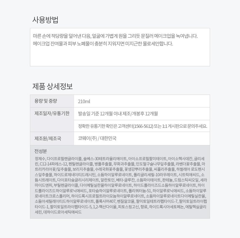 4. 사용방법 마른 손에 적당량을 덜어낸 다음, 얼굴에 가볍게 원을 그리듯 문질러 메이크업을 녹여냅니다.