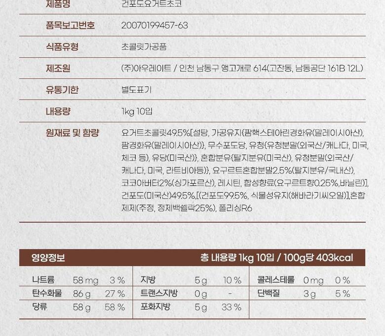 아우레이트 건포도요거트초코 1kg 10입 [박스]