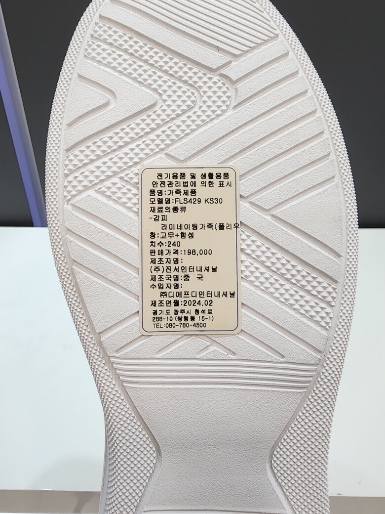 | 1. 제품 소재 (운동화인 경우에는 겉감, 안감을 구분하여 표시) | 라미네이팅 가죽 |