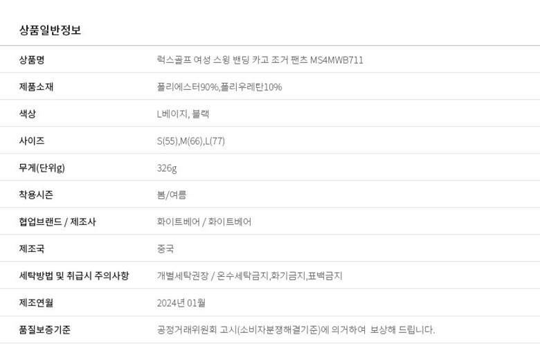 보스케 여성 봄 여름 골프웨어 골프 밴딩 카고 조거 팬츠 L02427