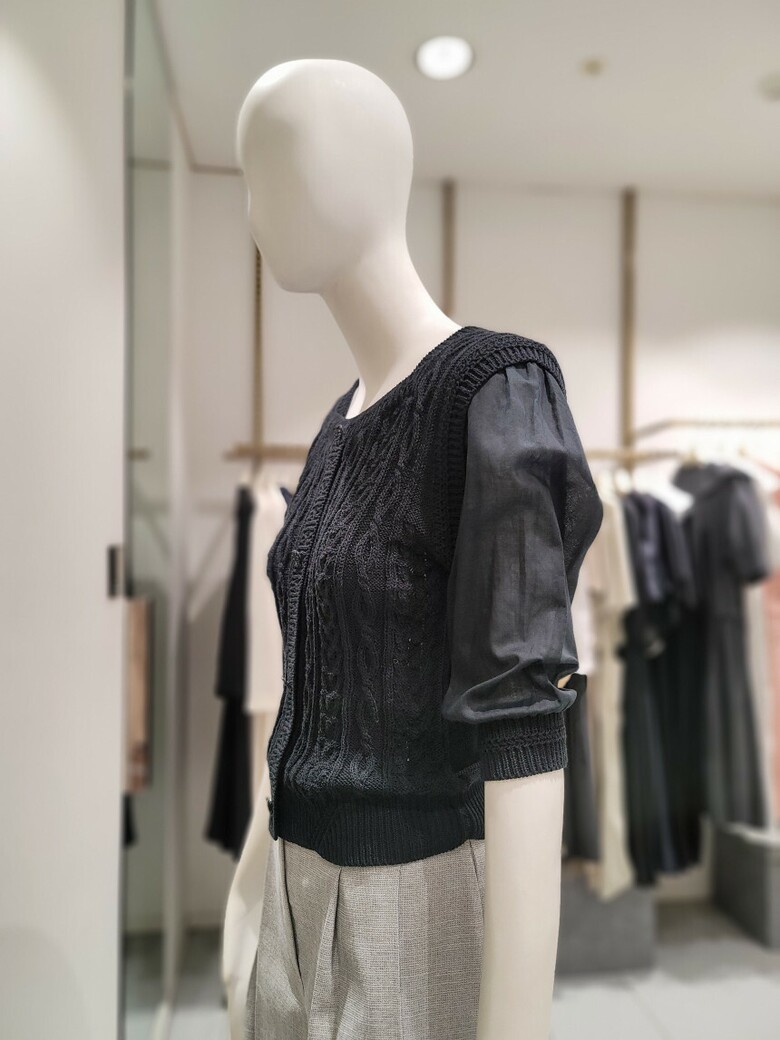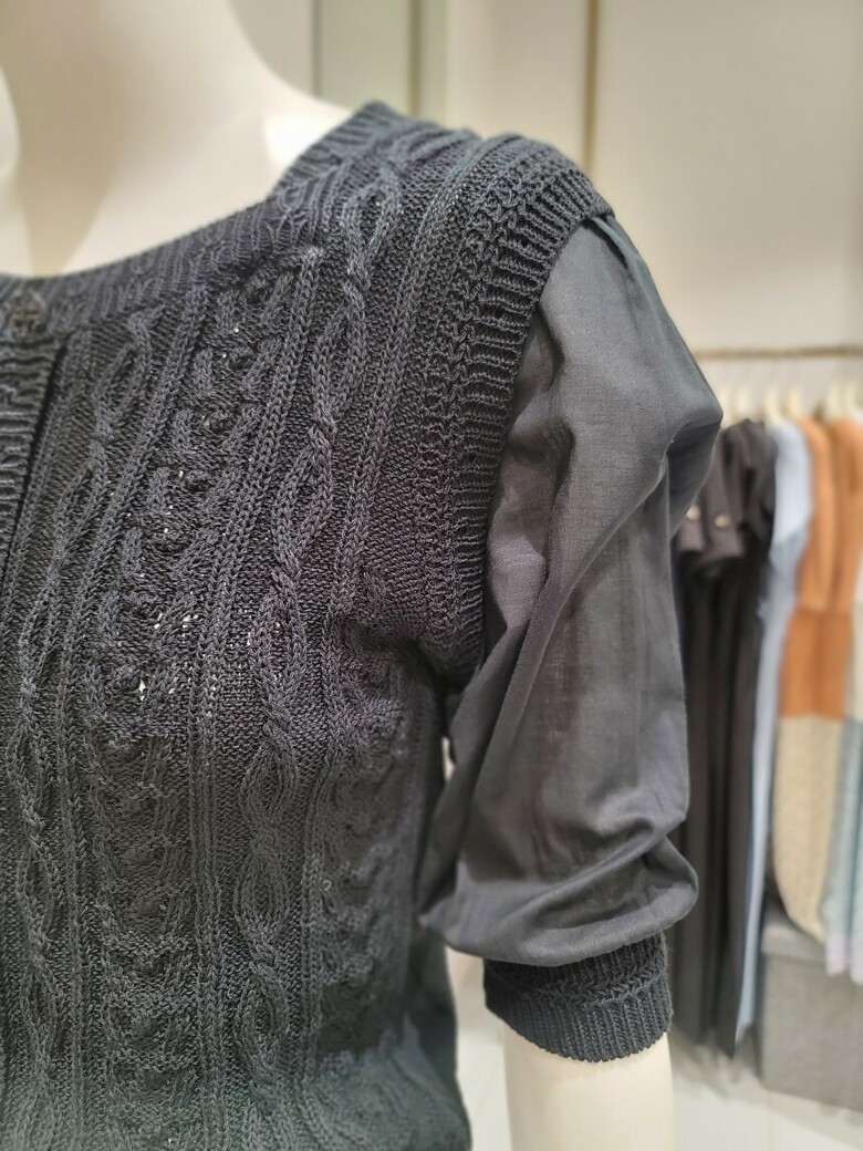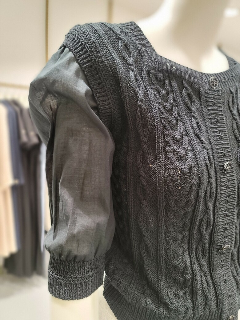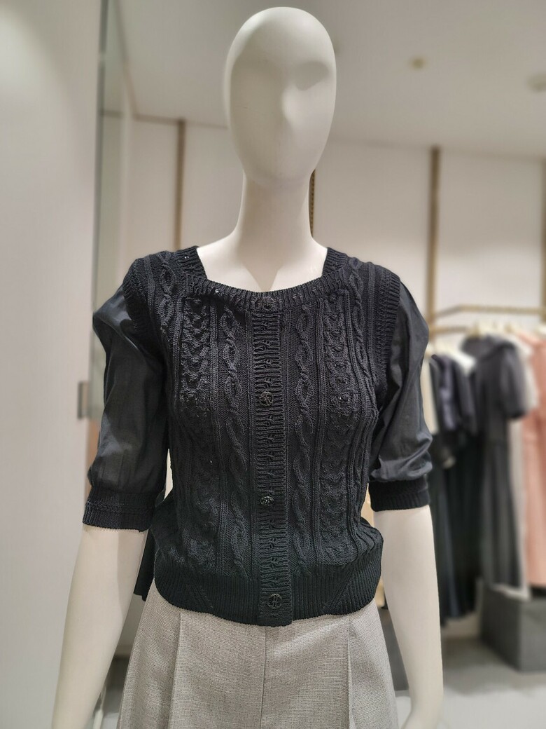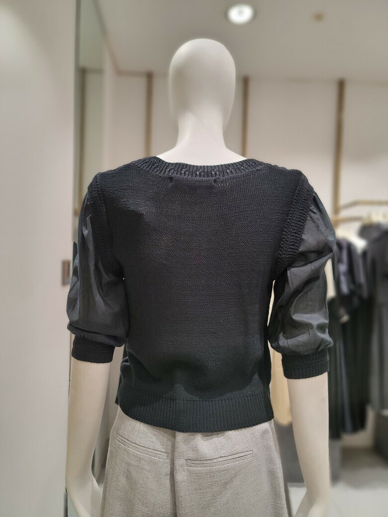 온앤온 스퀘어넥 소매배색포인트 블라우스니트 NJK4MP328