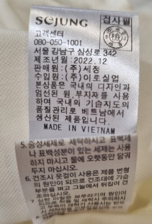 | 6. 세탁방법 및 취급시 주의사항 | 상품상세참조 |