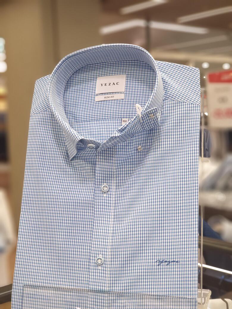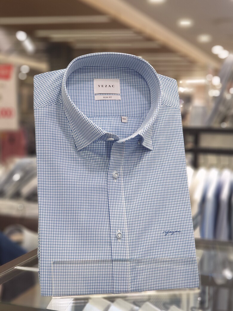면혼방 미니체크 카라스냅버튼 슬림핏셔츠