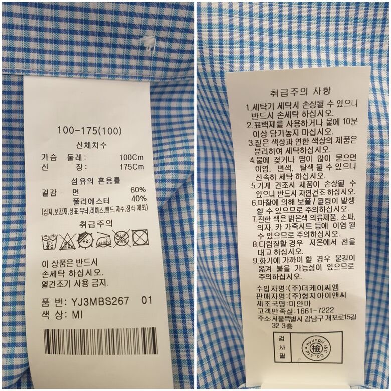 | 6. 세탁방법 및 취급시 주의사항 | 상품상세참조 |