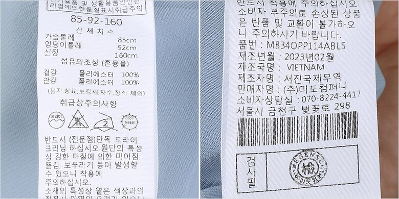 | 6. 세탁방법 및 취급시 주의사항 | 상세페이지 참조 |