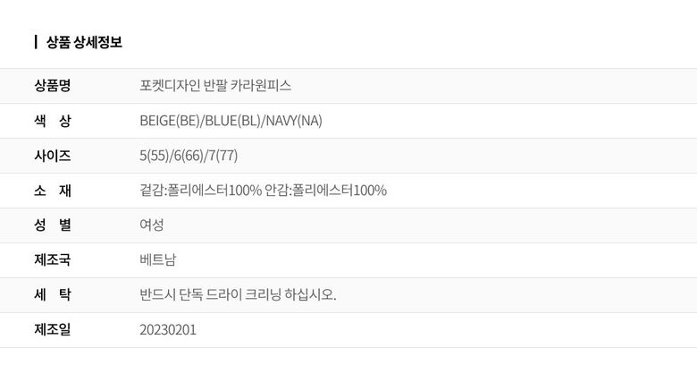| 2. 색상 | 색상:BEIGE(BE)/BLUE(BL)/NAVY(NA) |