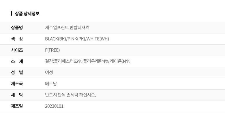 | 2. 색상 | 색상:PINK(PK)/WHITE(WH) |