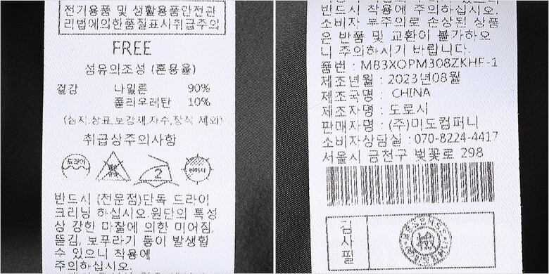 | 6. 세탁방법 및 취급시 주의사항 | 상세페이지 참조 |