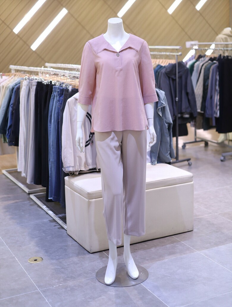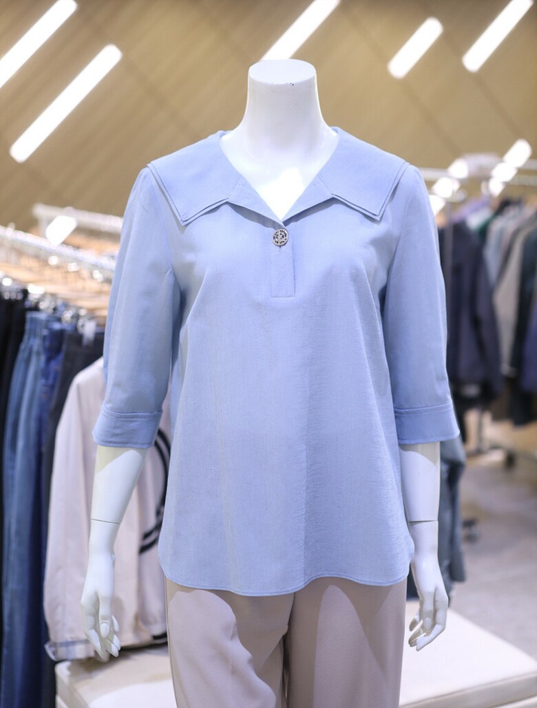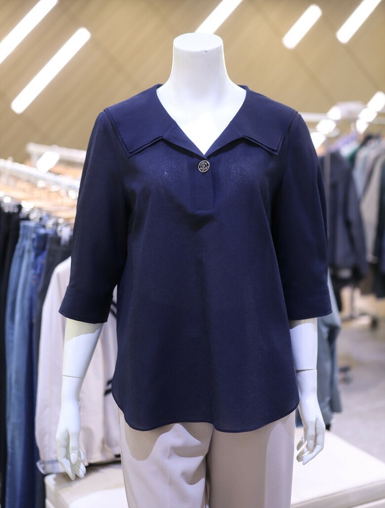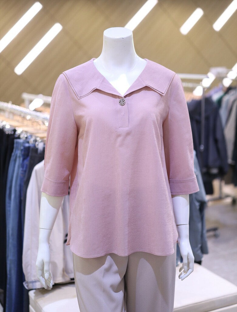 여성 오픈카라 5부 소매 블라우스 DQBPWB310