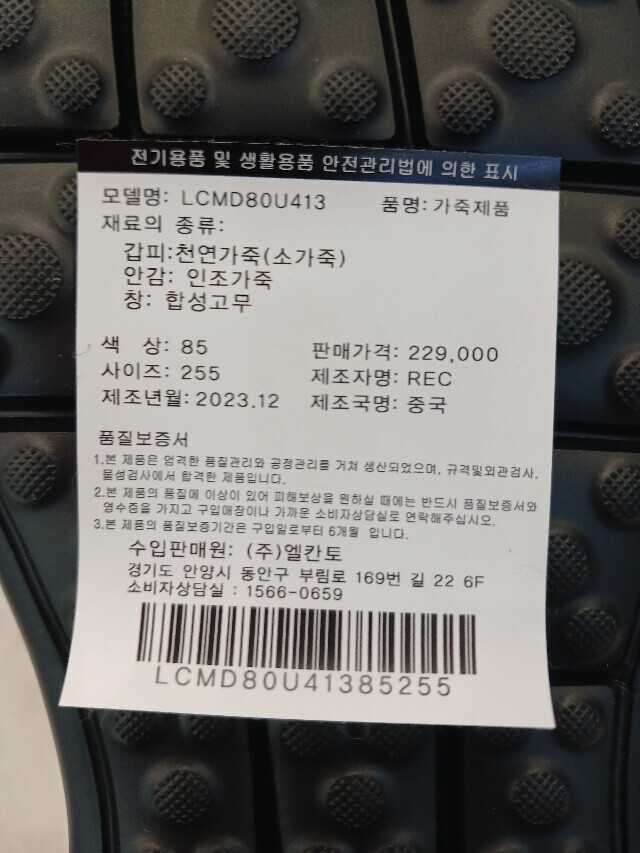 | 1. 제품 소재 (운동화인 경우에는 겉감, 안감을 구분하여 표시) | 상품상세참조 |