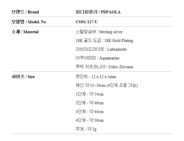 피디파올라 PDPAOLA CO01-117-U 여성 목걸이