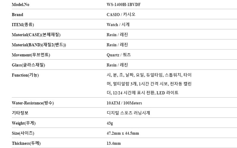 카시오 CASIO WS-1400H-1BVDF 남성 시계