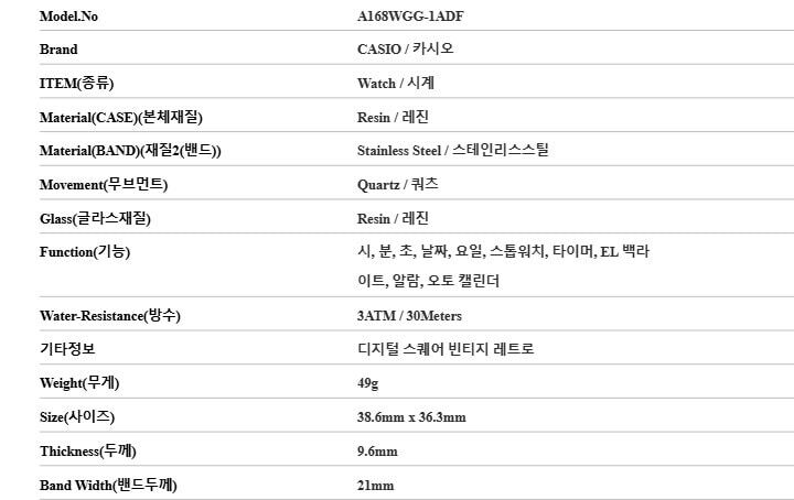 | 7-2. 시계 - 기능, 방수 등 | WATER RESISTANCE - 3ATM(30Meters) |