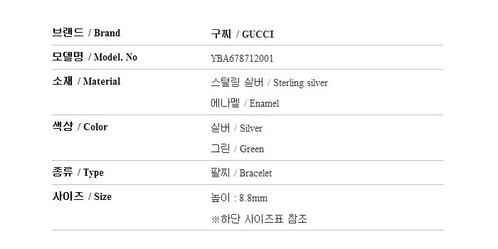 구찌 GUCCI YBA678712001 로고 에나멜 실버 공용 팔찌