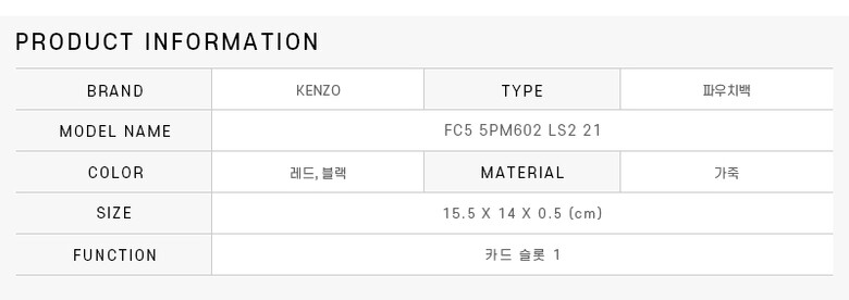 | 5. 제조사 | 겐조/MACHO-병행수입 |