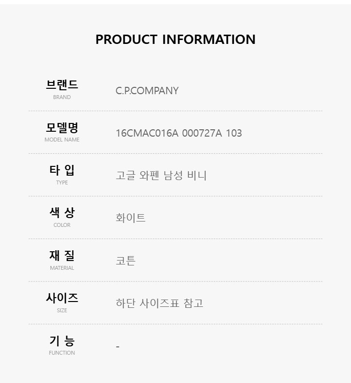 CP컴퍼니 C.P.COMPANY 16CMAC016A 000727A 103 코튼 고글 남성 비니