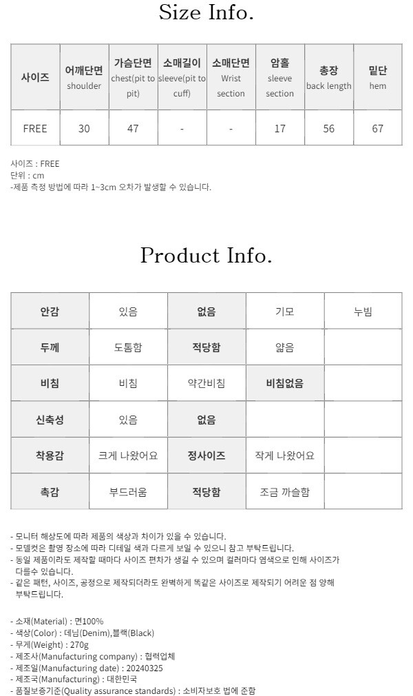 - COLOR(색상) : 데님(Denim),블랙(Black)