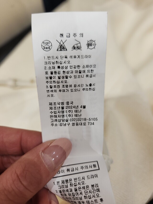 | 6. 세탁방법 및 취급시 주의사항 | 상품상세참조 |