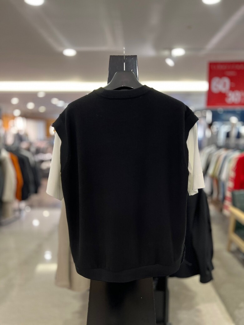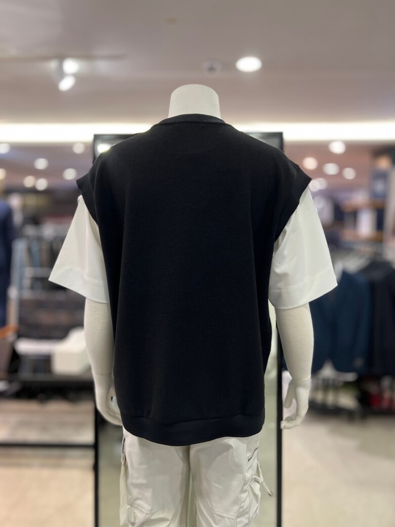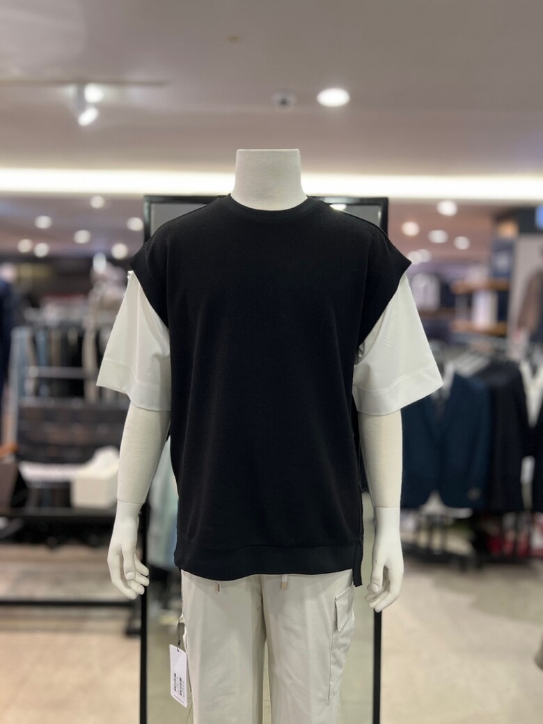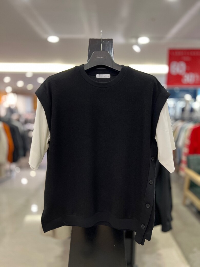 리버클래시 블랙 니트 레이어드 버튼슬릿 반팔 라운드 티셔츠 LKS41339