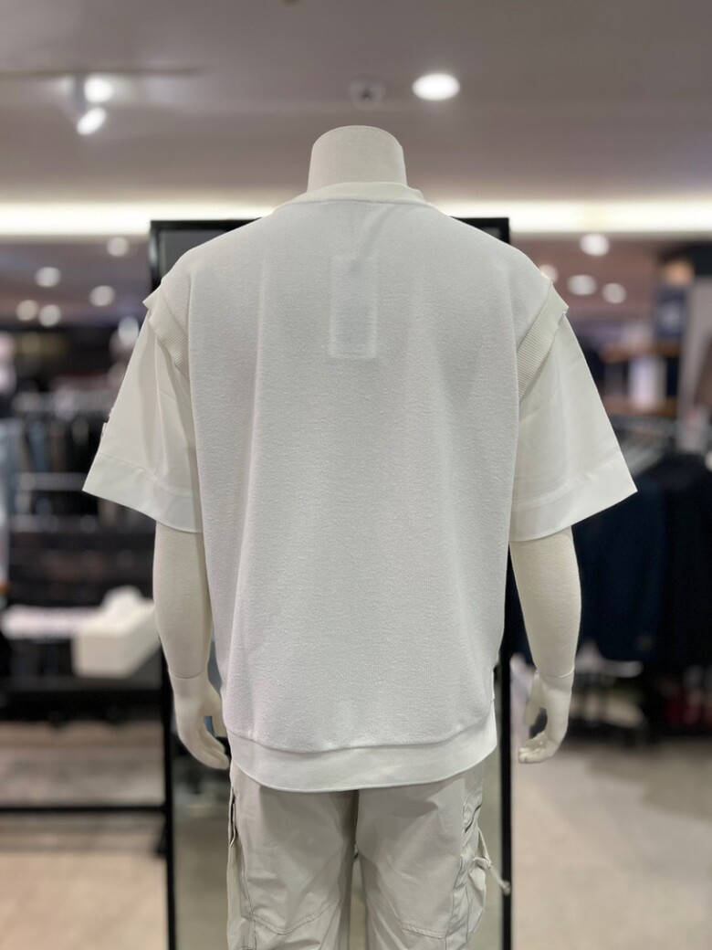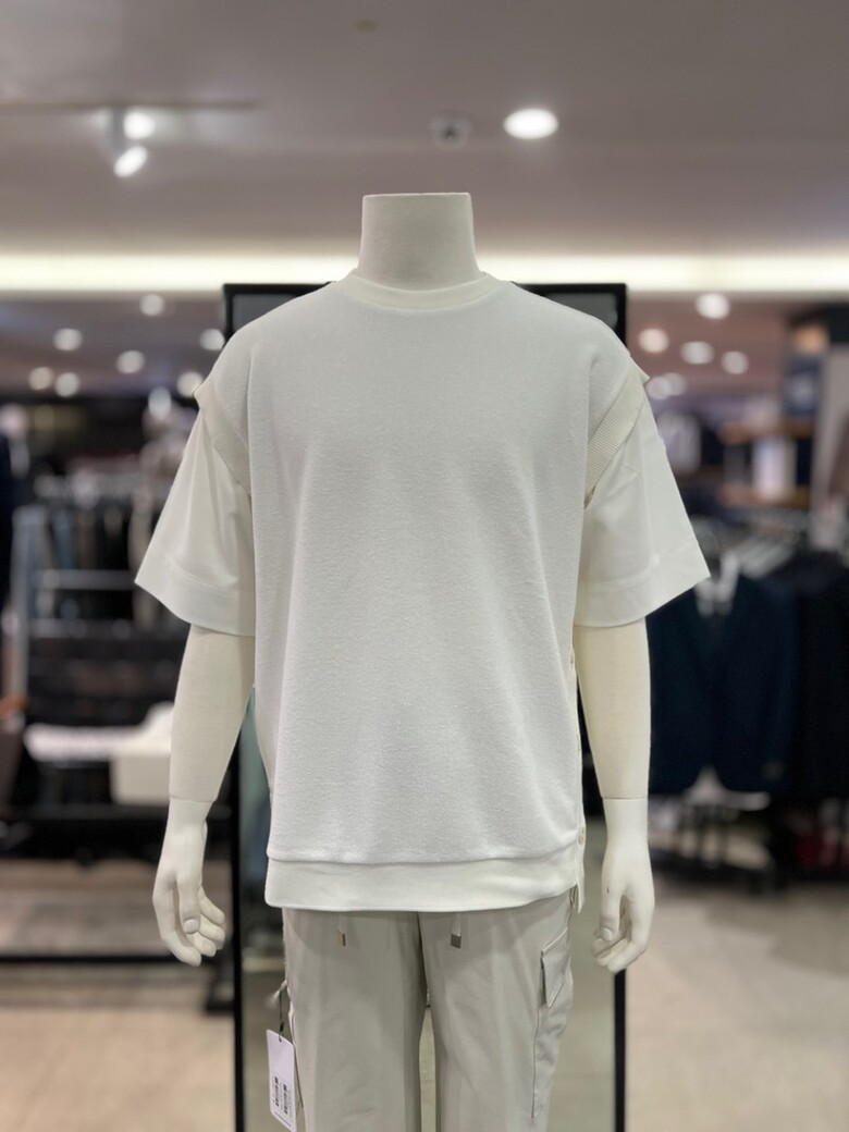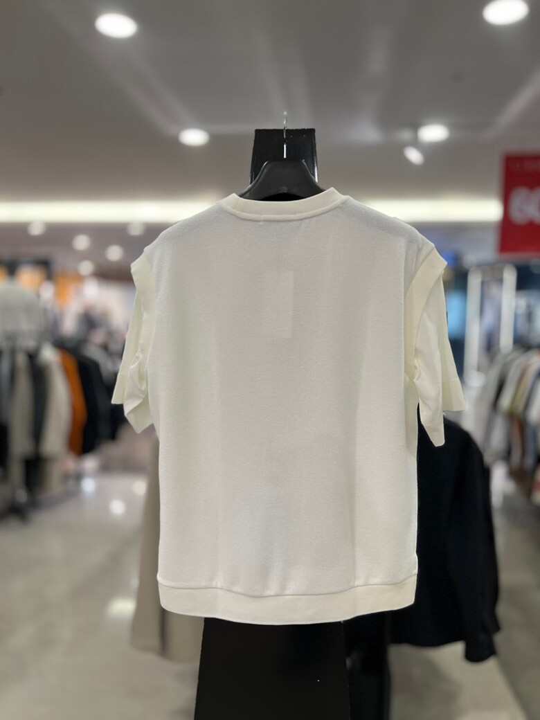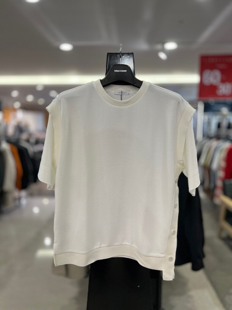 리버클래시 아이보리 니트 레이어드 버튼슬릿 반팔 라운드 티셔츠 LKS41338