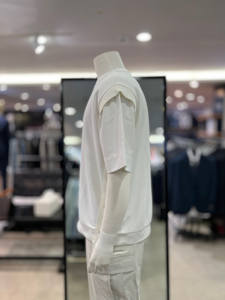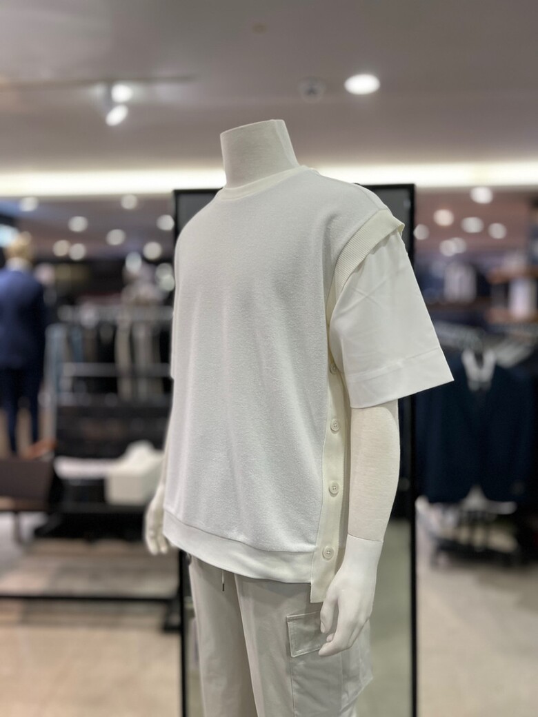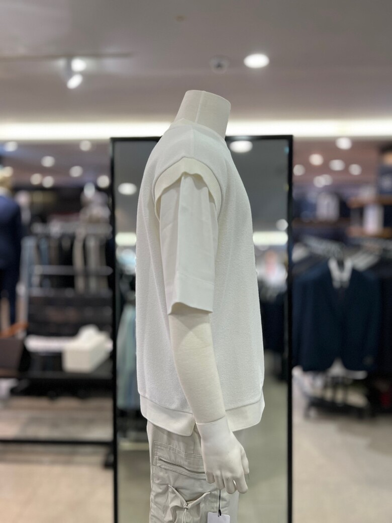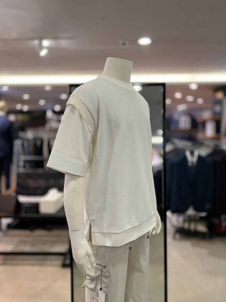 리버클래시 아이보리 니트 레이어드 버튼슬릿 반팔 라운드 티셔츠 LKS41338