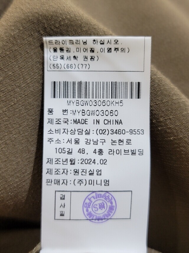 | 6. 세탁방법 및 취급시 주의사항 | 상품상세참조 |