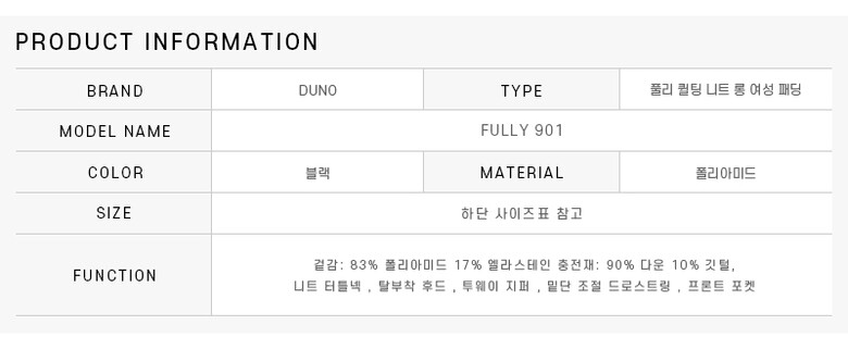 두노 DUNO FULLY 901 FULLY 풀리 퀼팅 니트 롱 여성 패딩