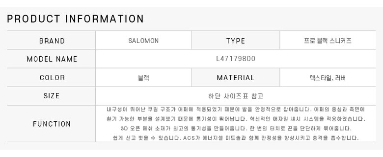 살로몬 SALOMON L47179800 ACS 프로 블랙 공용 스니커즈
